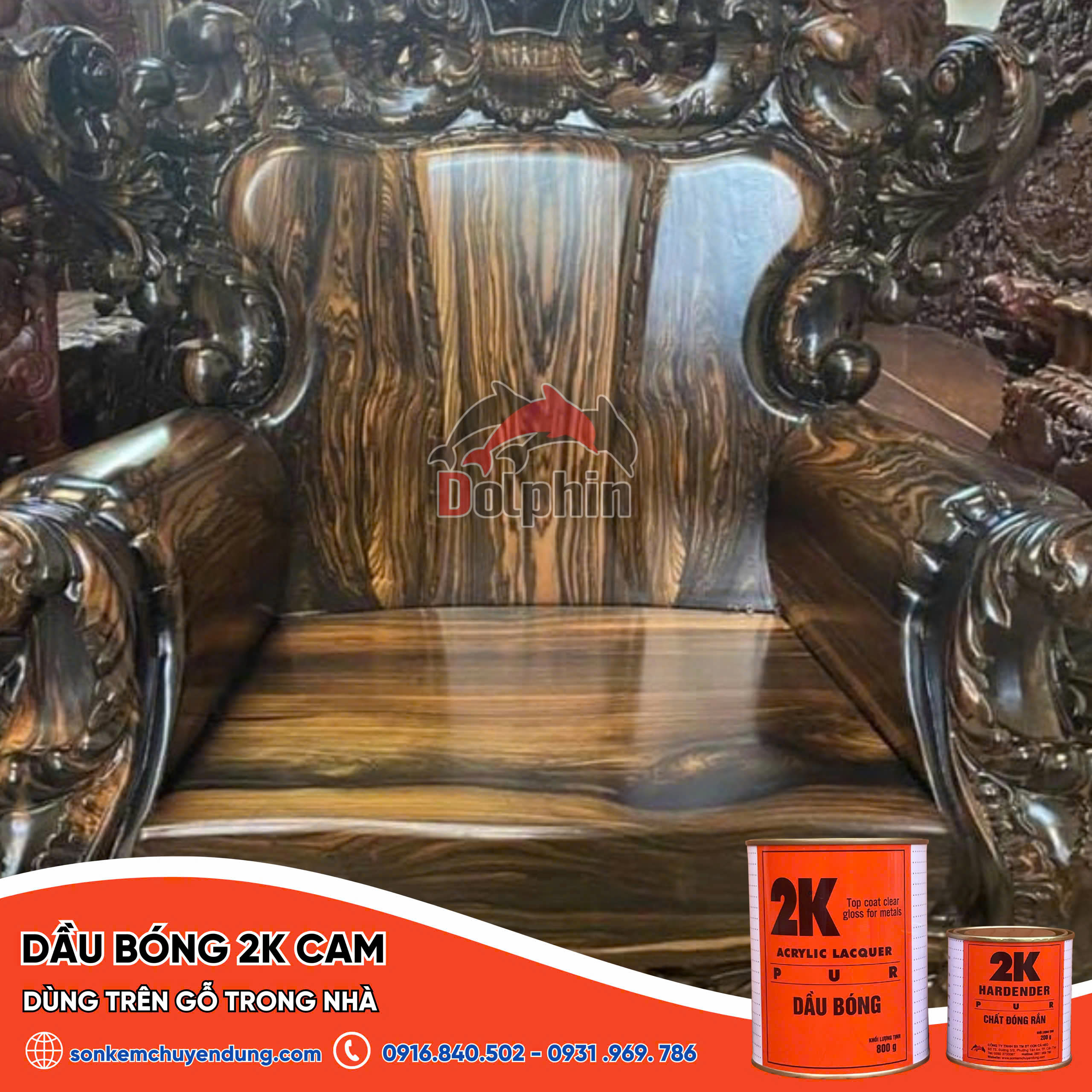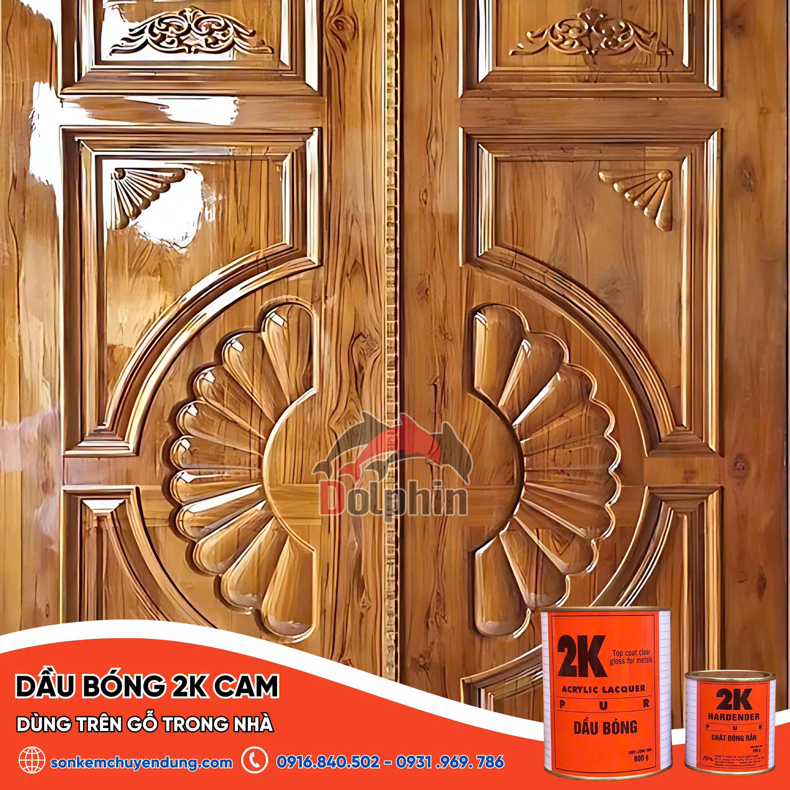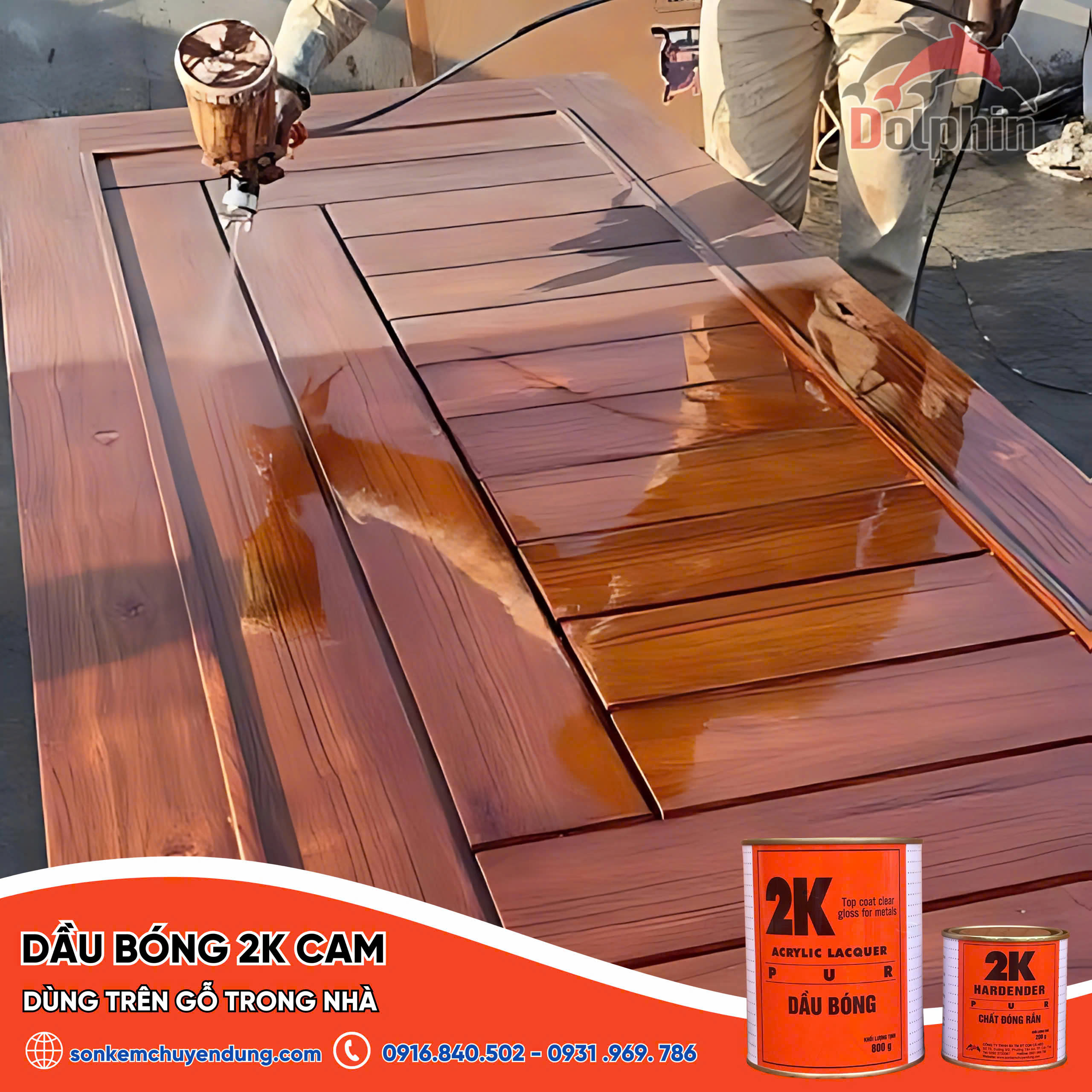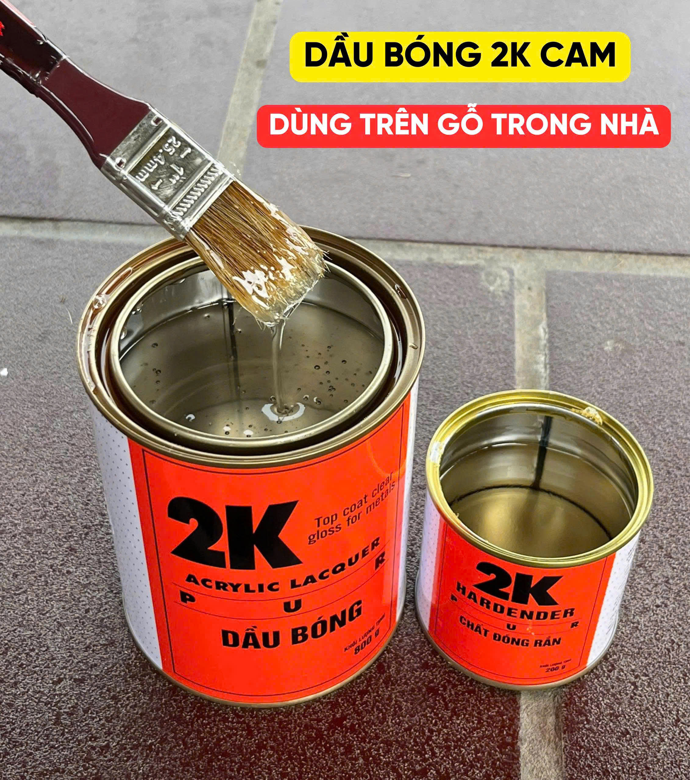 Dầu bóng 2K (Cam): Là lớp sơn hai thành phần được kết hợp từ nhựa Acrylic Polyol và chất đóng rắn Isocyanate chất lượng cao, cho màng sơn tinh khô, có độ bóng đẹp và độ cứng cao, bám dính tốt, giữ nước độ trong sáng. Không bị ngã vàng khi để ngoài trời, đặc biệt bền thời tiết.
