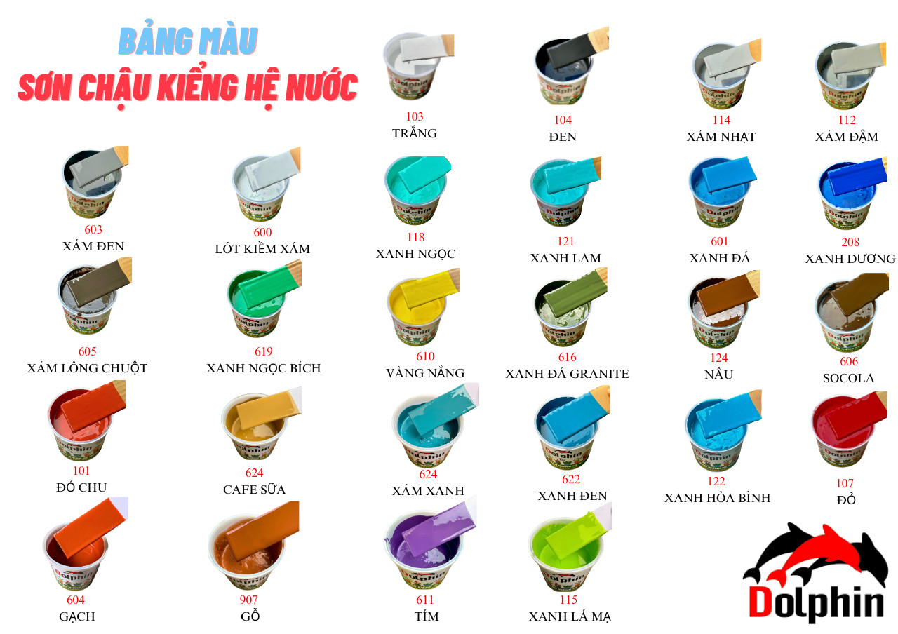 Sơn chậu kiểng hệ nước Dolphin – Là loại sơn đặc biệt dùng bảo vệ bề mặt và trang trí chậu kiểng, ngói, bê tông.