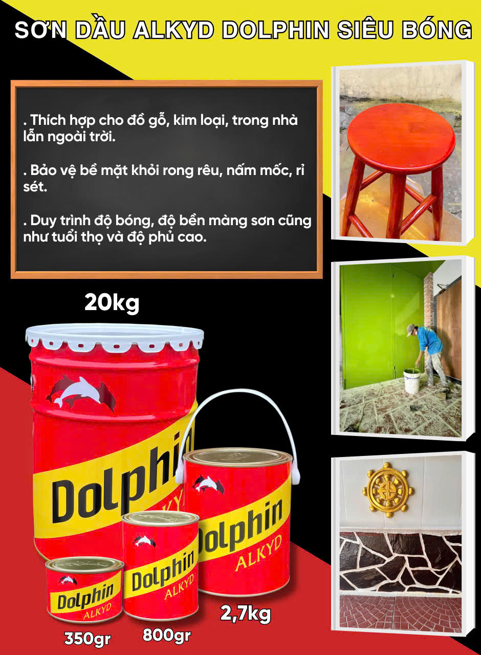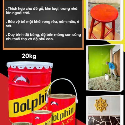 Sơn dầu Dolphin Alkyd bóng là loại sơn phủ bóng cao cấp gốc Alkyd dùng để phủ bóng các bề mặt kim loại, gỗ,…bảo vệ bề mặt khỏi rong rêu, nấm mốc, rỉ sét. Dolphin Alkyd có khả năng duy trì độ bóng, độ bền màng sơn cũng như tuổi thọ và độ phủ bóng cao. Thích hợp cho đồ gỗ, kim loại, trong nhà lẫn ngoài trời.