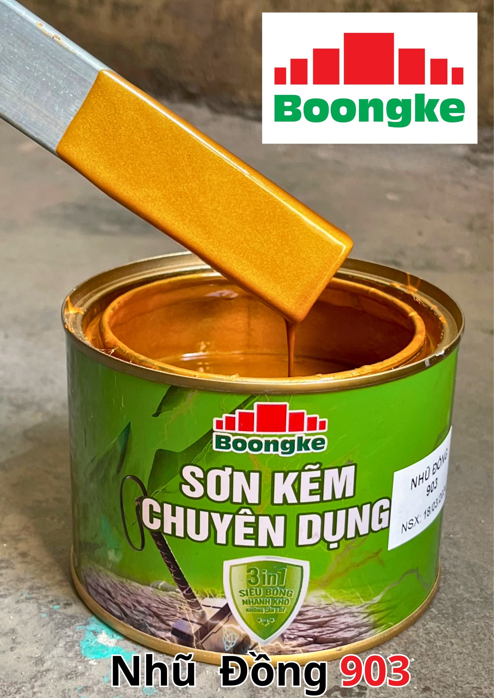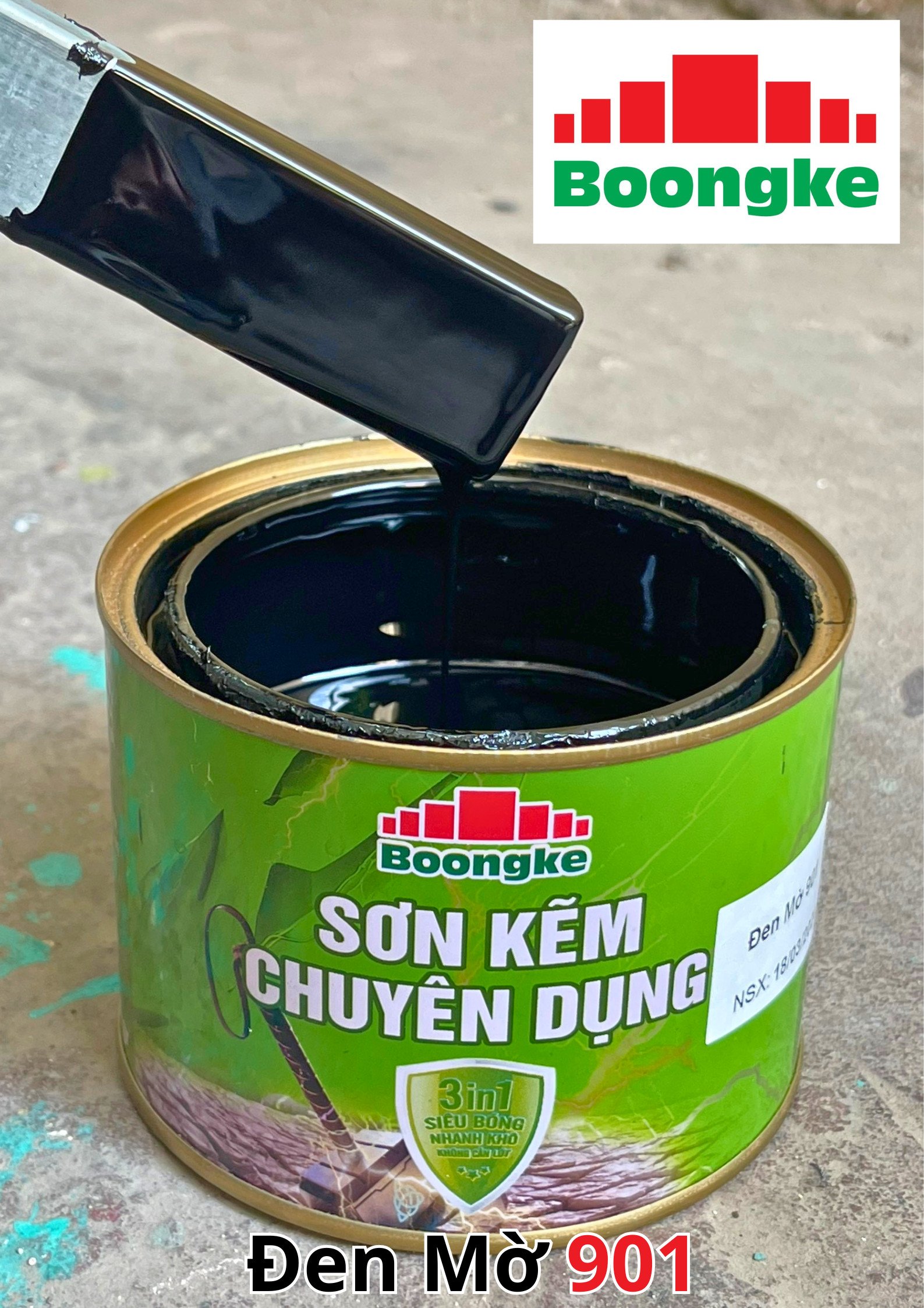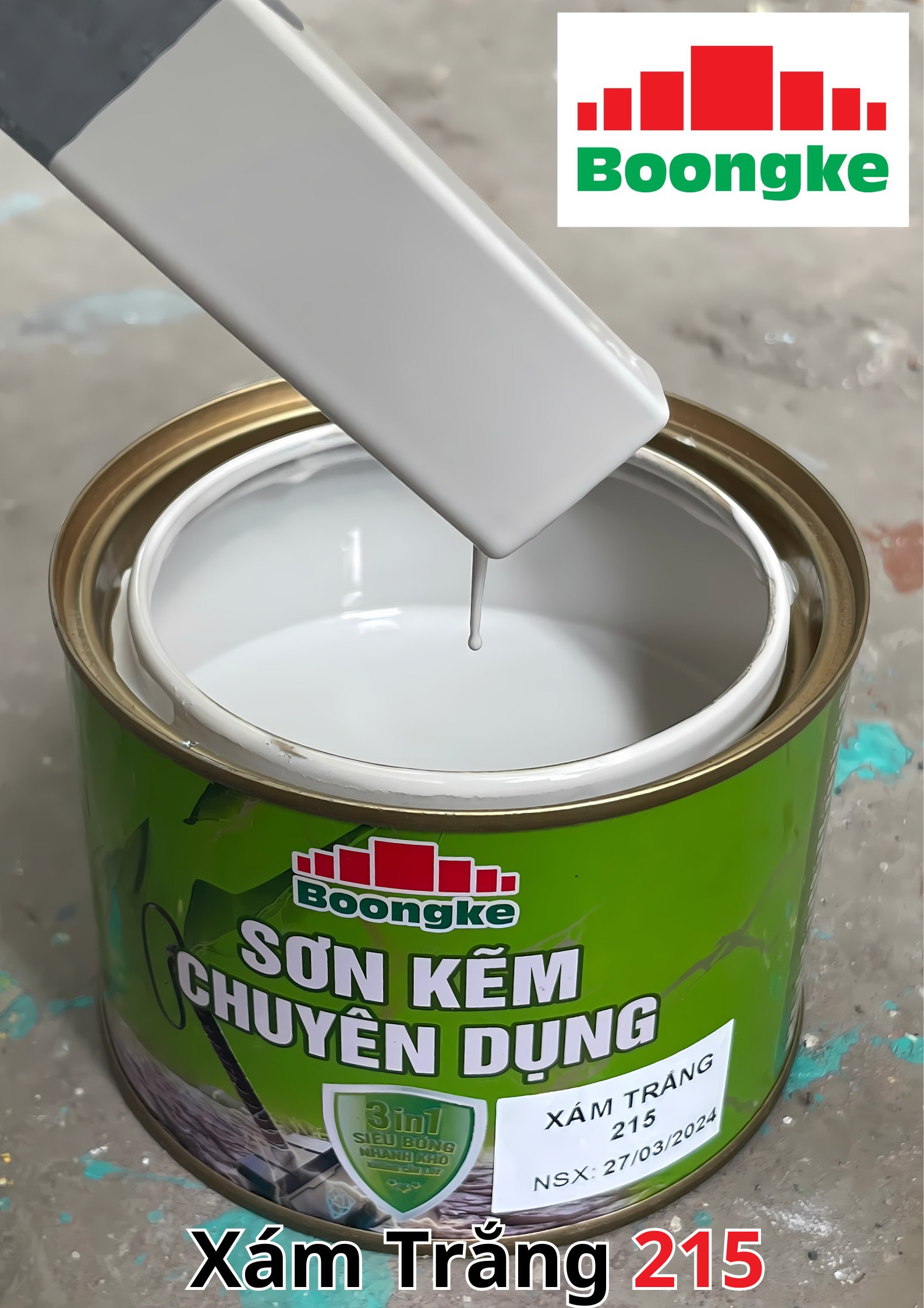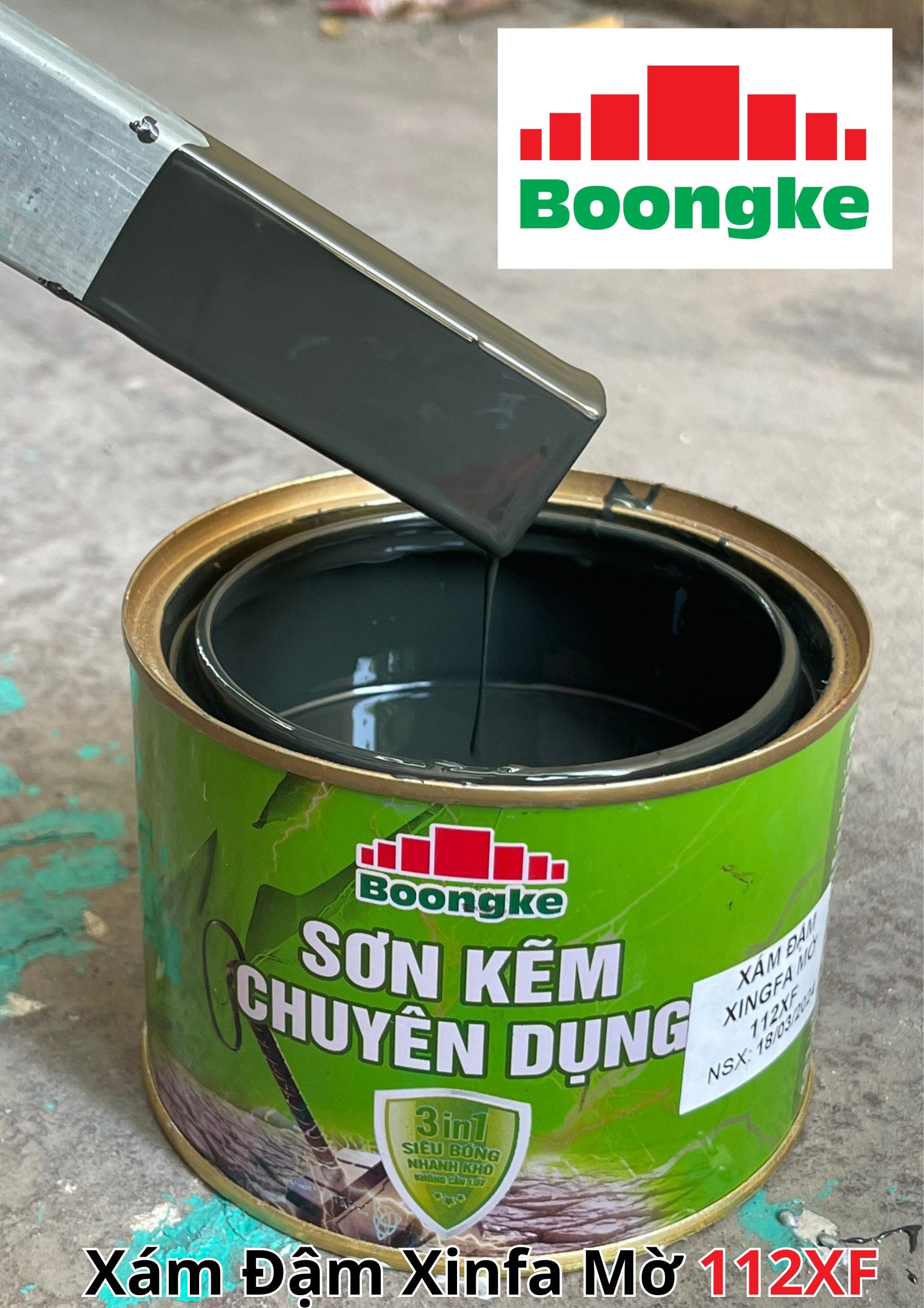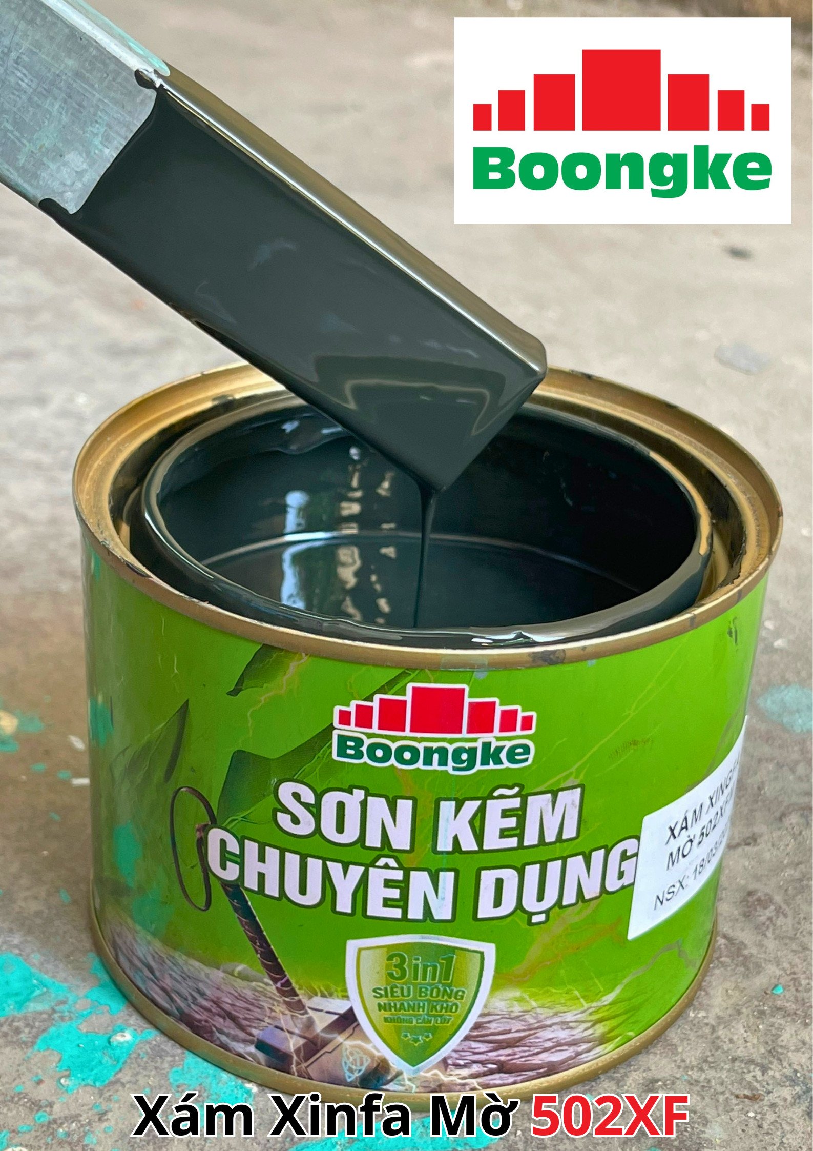 SƠN KẼM SIÊU BÓNG 1 THÀNH PHẦN SIÊU BÓNG BOONGKE Là loại sơn tổng hợp đặc biệt dùng cho việc bảo vệ bề mặt khó bám dính như thép mạ kẽm, betong, gỗ, kính,… sử dụng trong các công trình như nhà thép, cổng sắt, cửa sắt, bảo vệ, chống rỉ, sơn cho tole mạ kẽm, inox, gỗ…Sơn phủ màu trực tiếp lên bề mặt, không cần sơn lót.