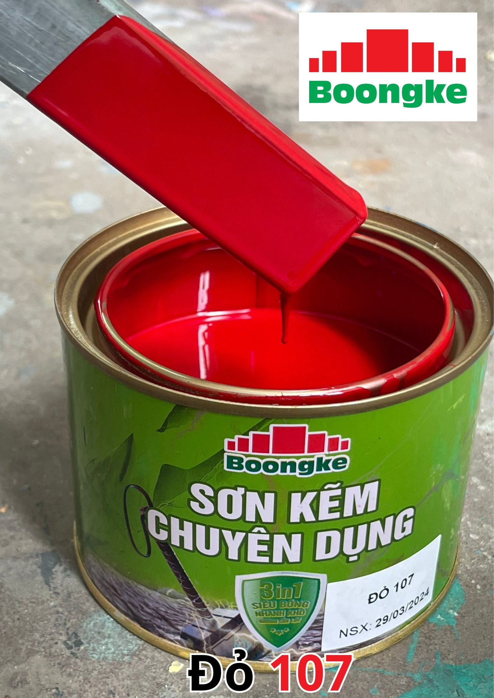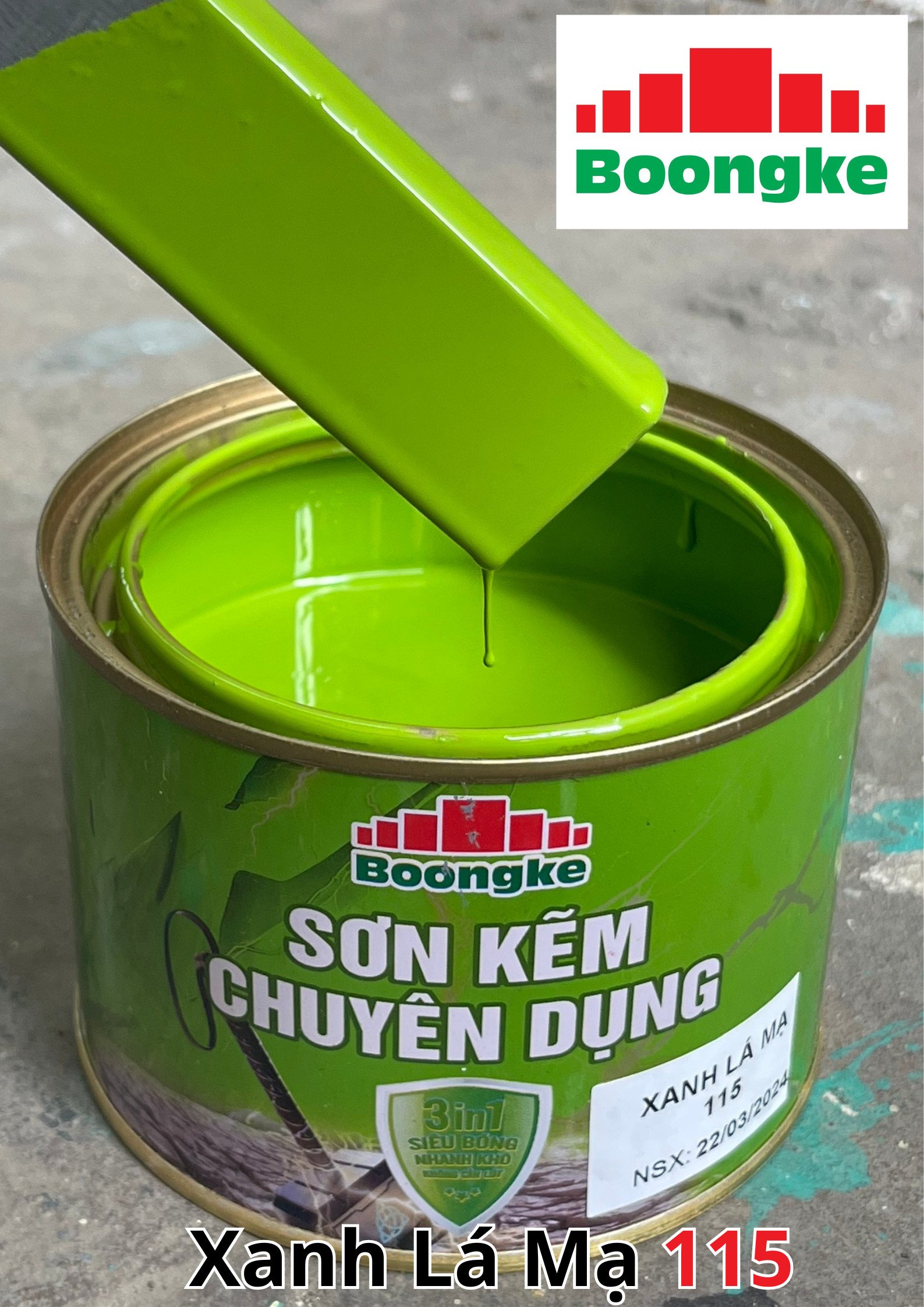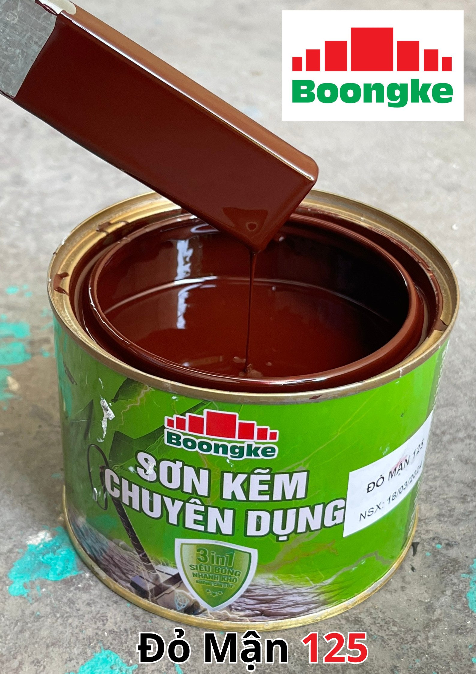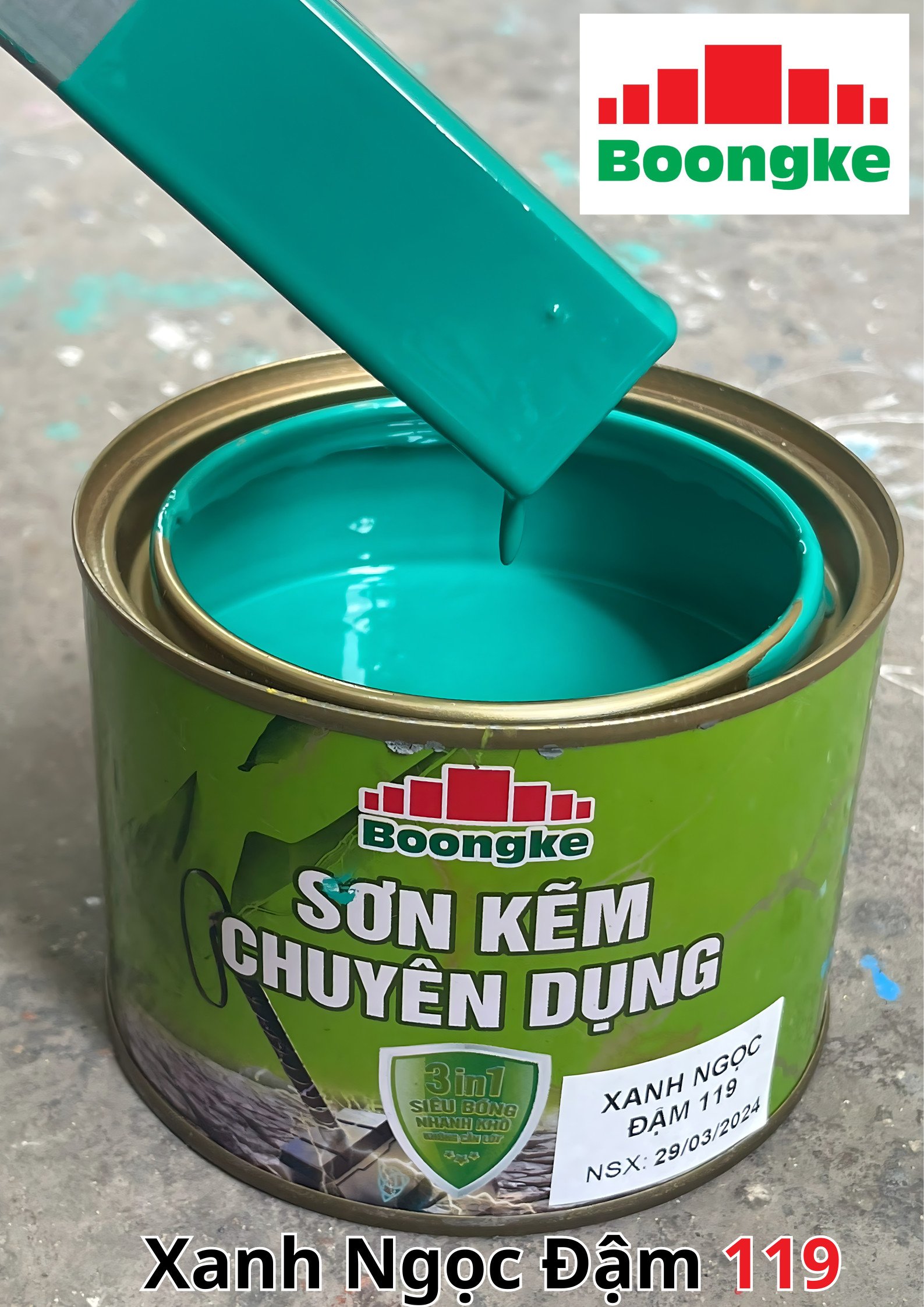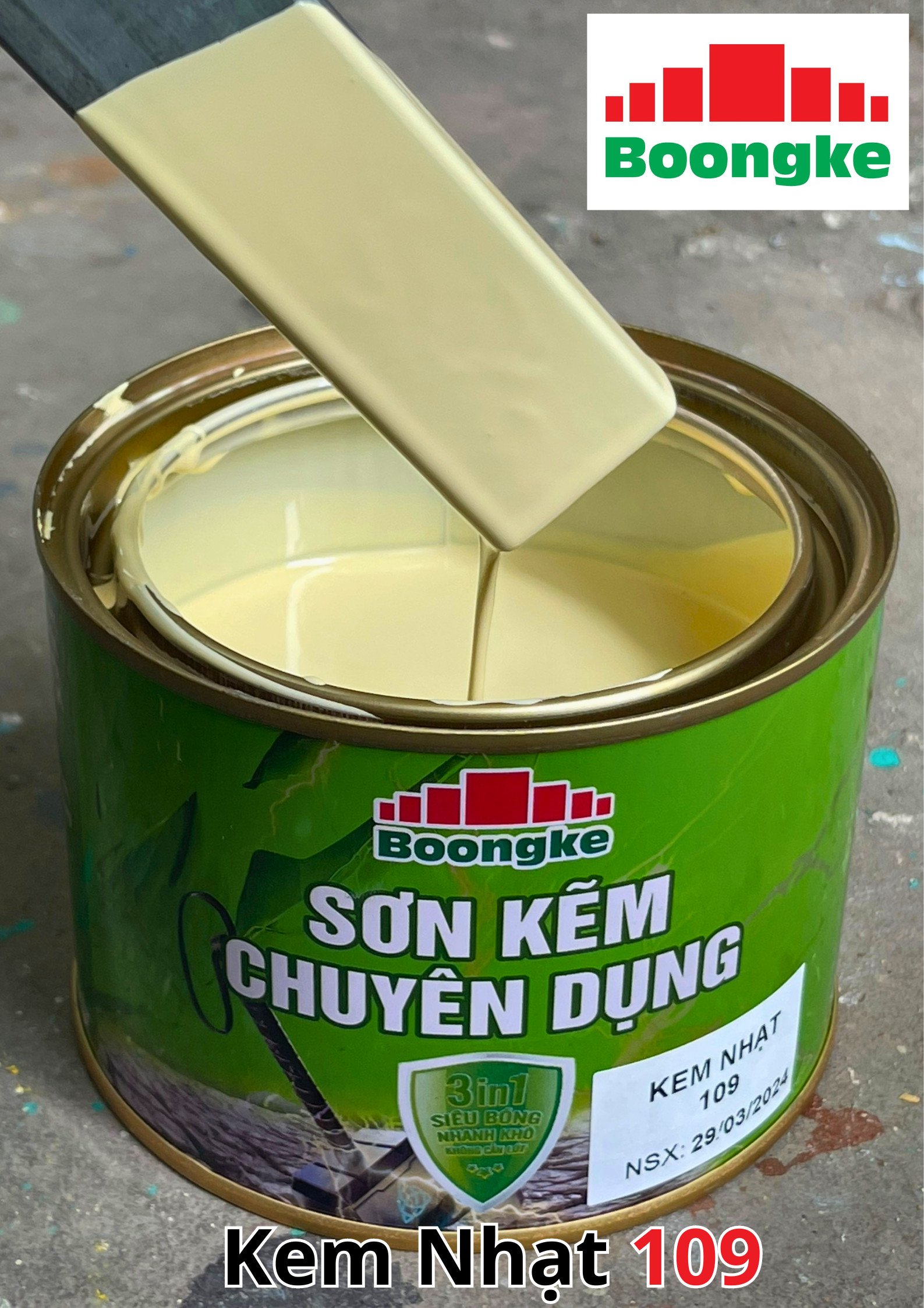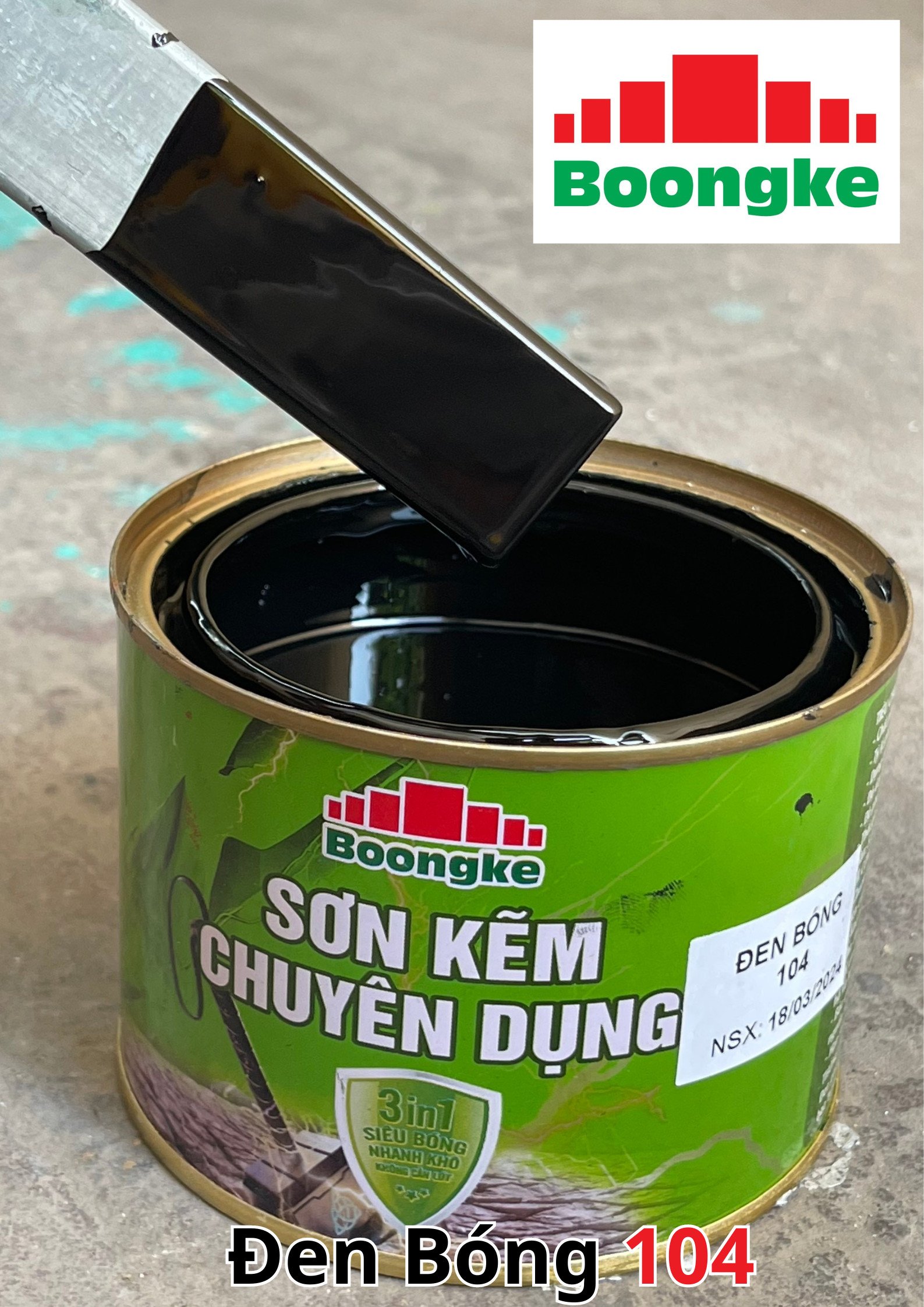 SƠN KẼM SIÊU BÓNG 1 THÀNH PHẦN SIÊU BÓNG BOONGKE Là loại sơn tổng hợp đặc biệt dùng cho việc bảo vệ bề mặt khó bám dính như thép mạ kẽm, betong, gỗ, kính,… sử dụng trong các công trình như nhà thép, cổng sắt, cửa sắt, bảo vệ, chống rỉ, sơn cho tole mạ kẽm, inox, gỗ…Sơn phủ màu trực tiếp lên bề mặt, không cần sơn lót.