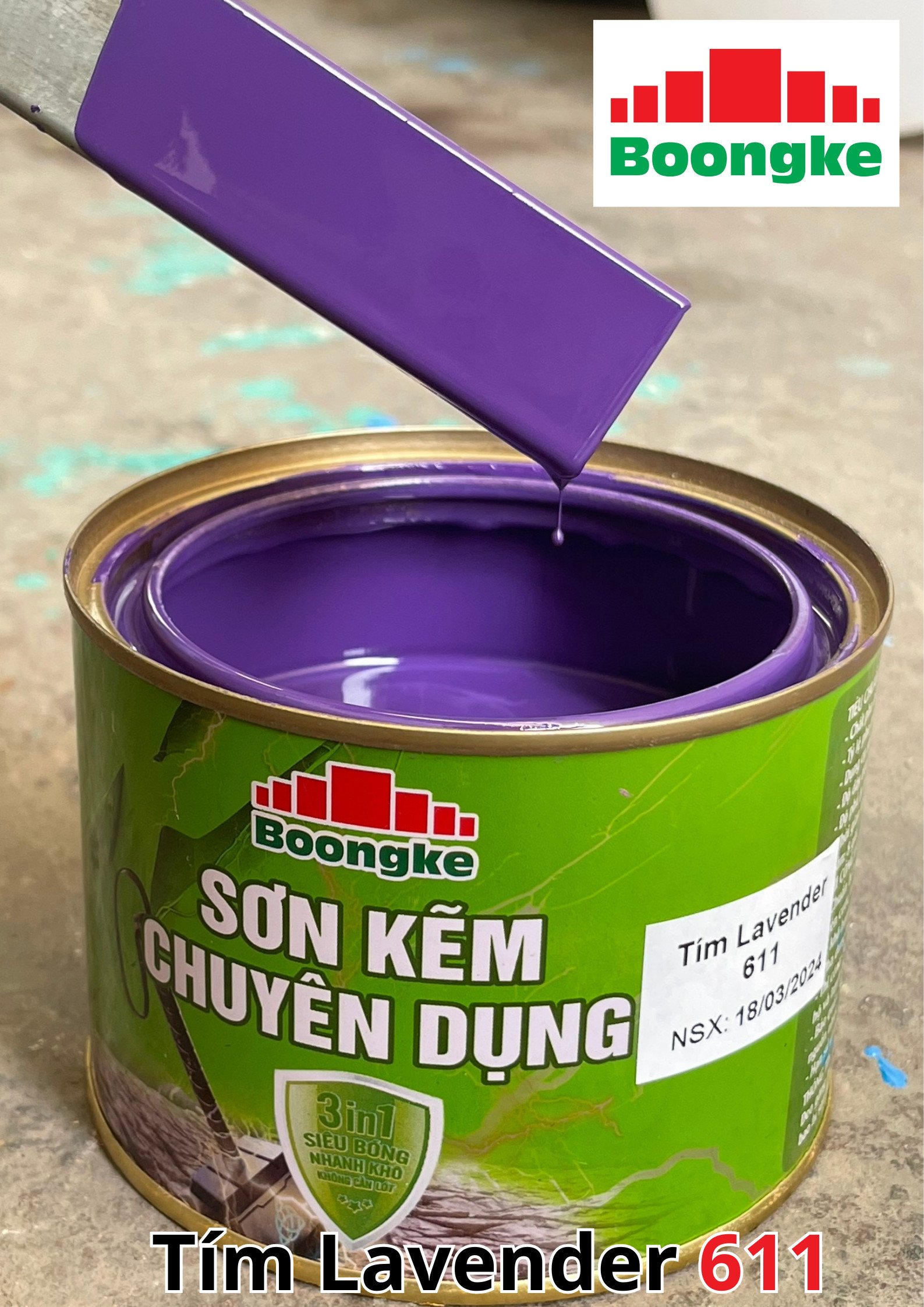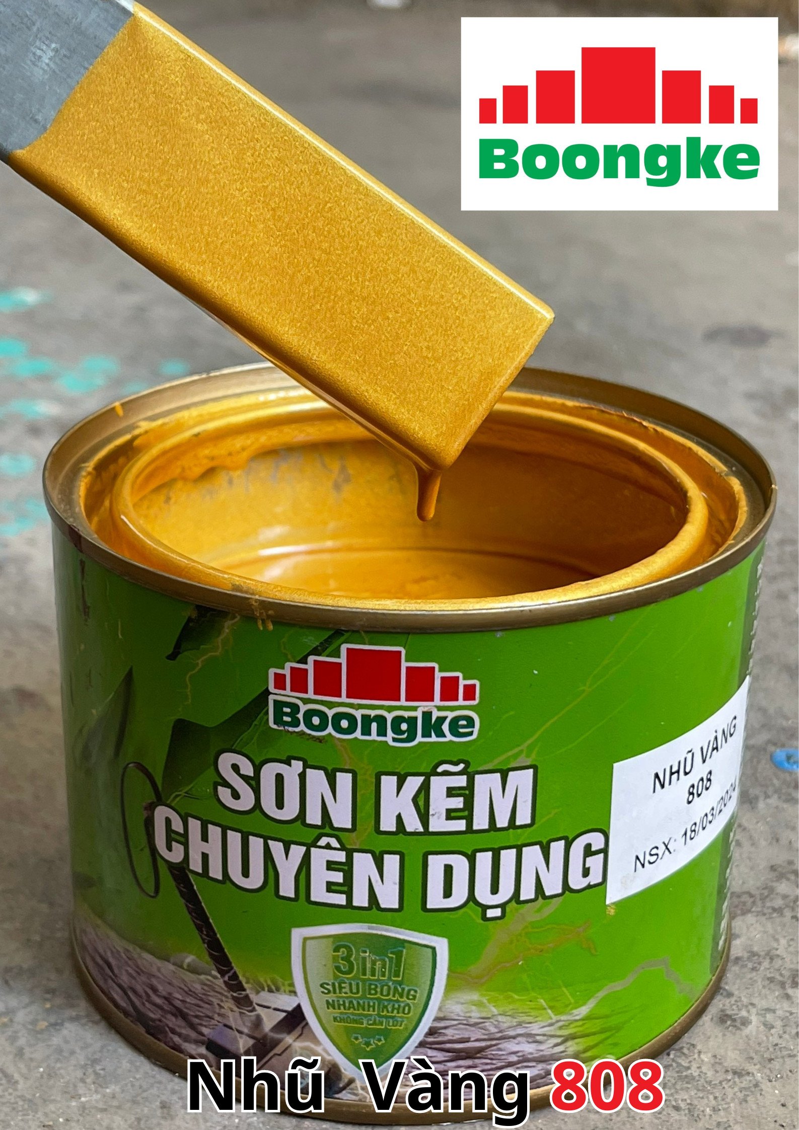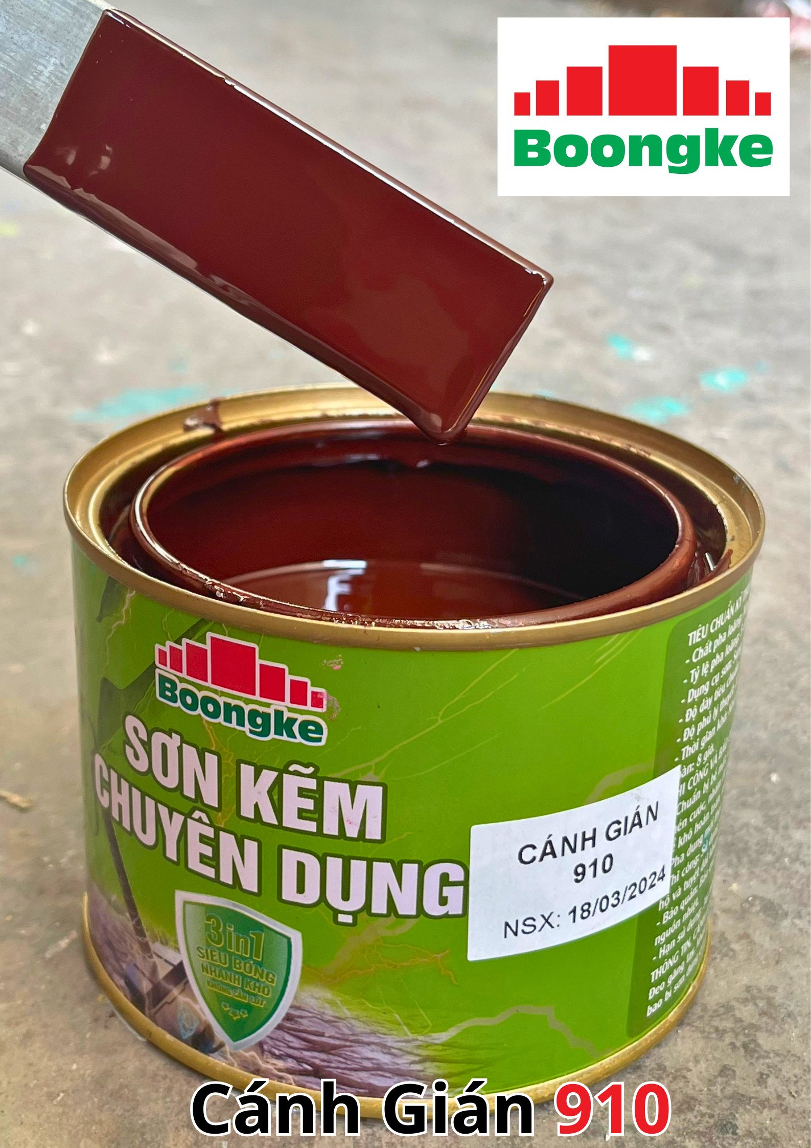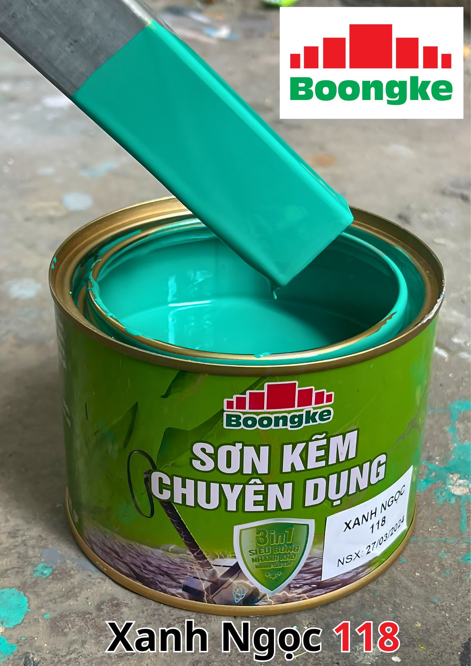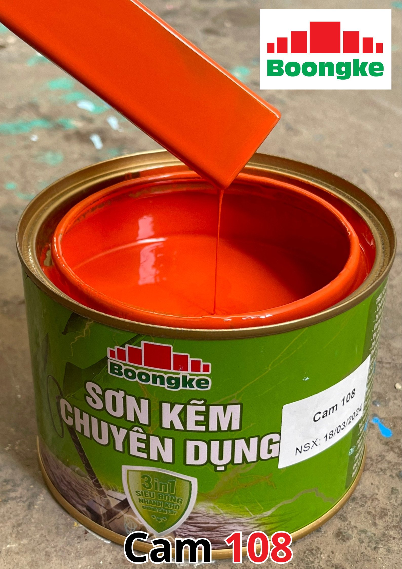 SƠN KẼM SIÊU BÓNG 1 THÀNH PHẦN SIÊU BÓNG BOONGKE Là loại sơn tổng hợp đặc biệt dùng cho việc bảo vệ bề mặt khó bám dính như thép mạ kẽm, betong, gỗ, kính,… sử dụng trong các công trình như nhà thép, cổng sắt, cửa sắt, bảo vệ, chống rỉ, sơn cho tole mạ kẽm, inox, gỗ…Sơn phủ màu trực tiếp lên bề mặt, không cần sơn lót.