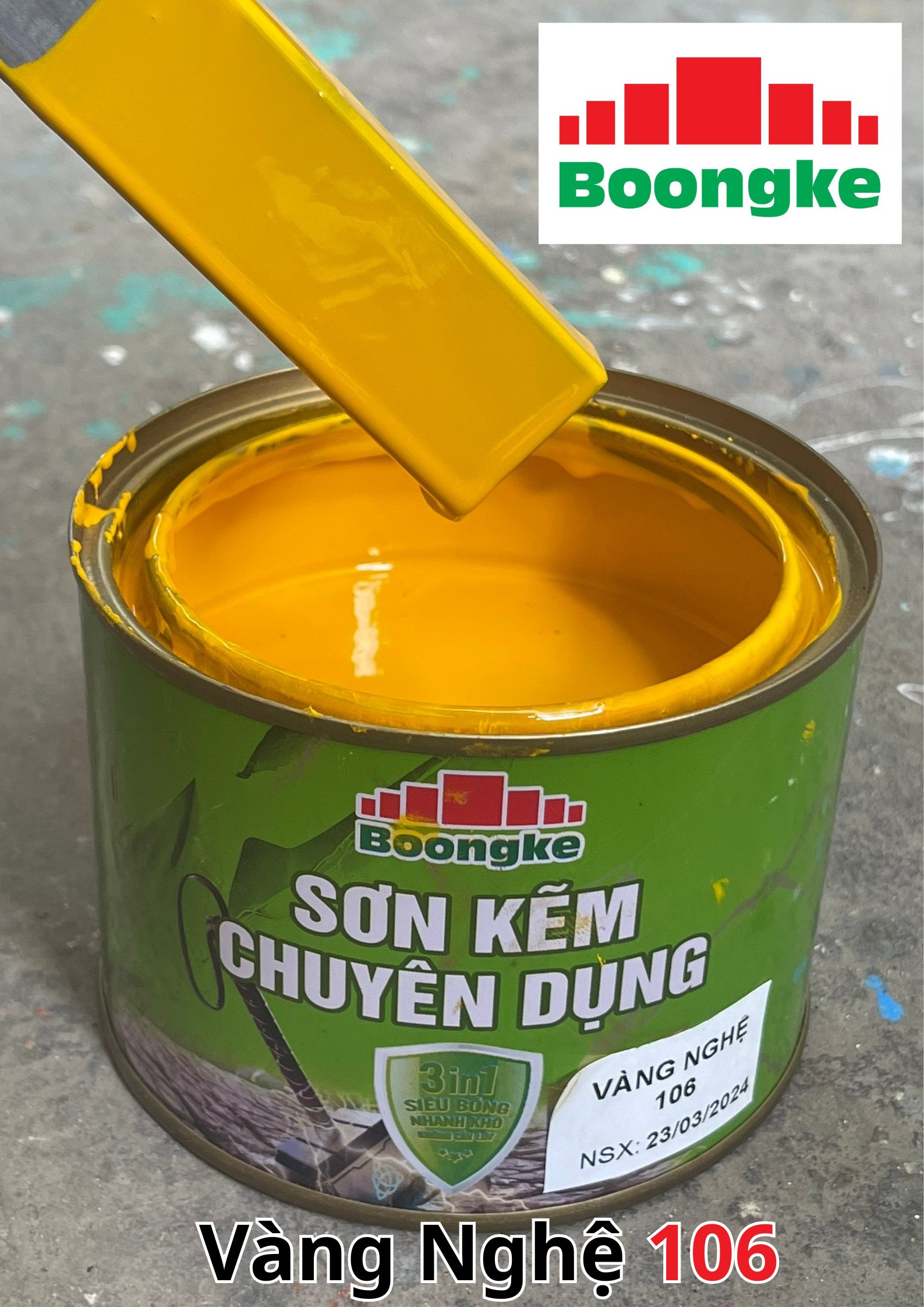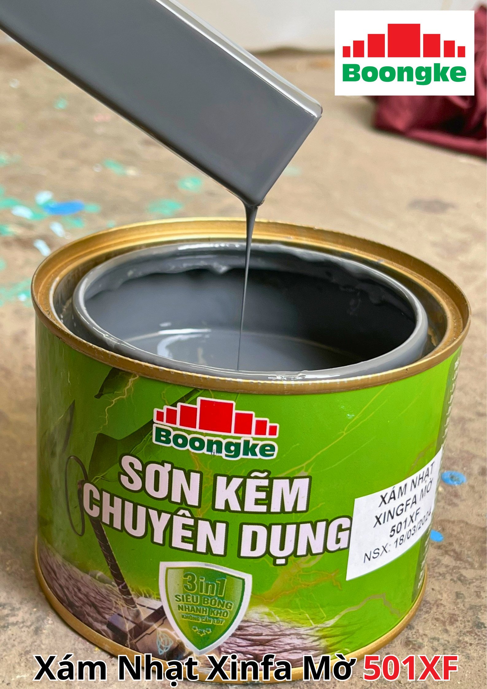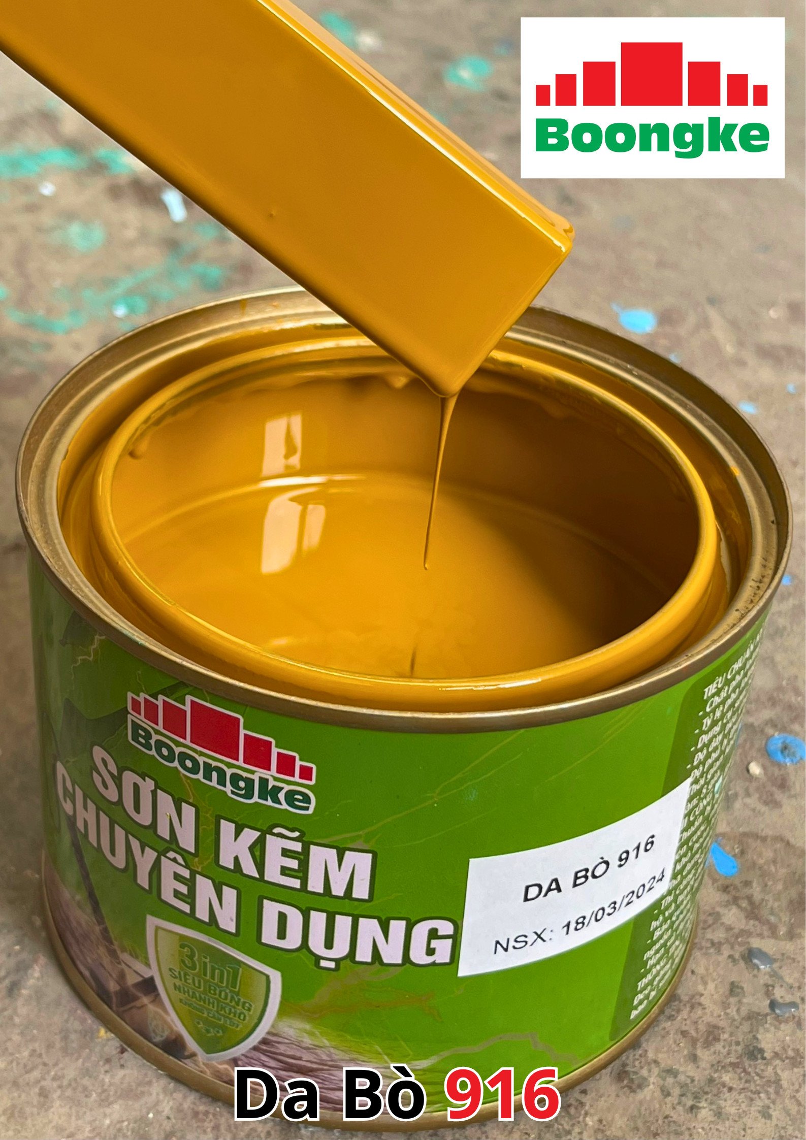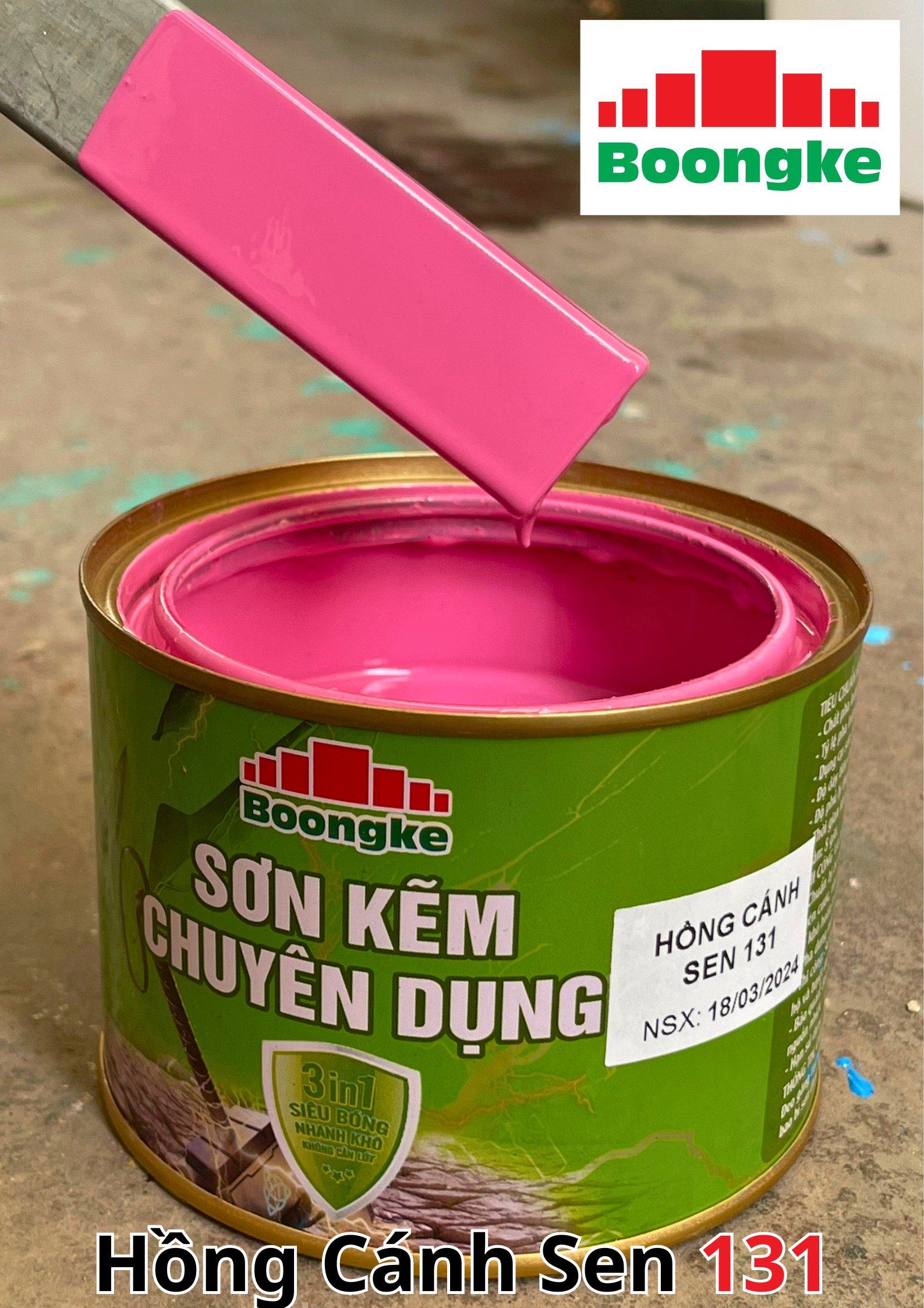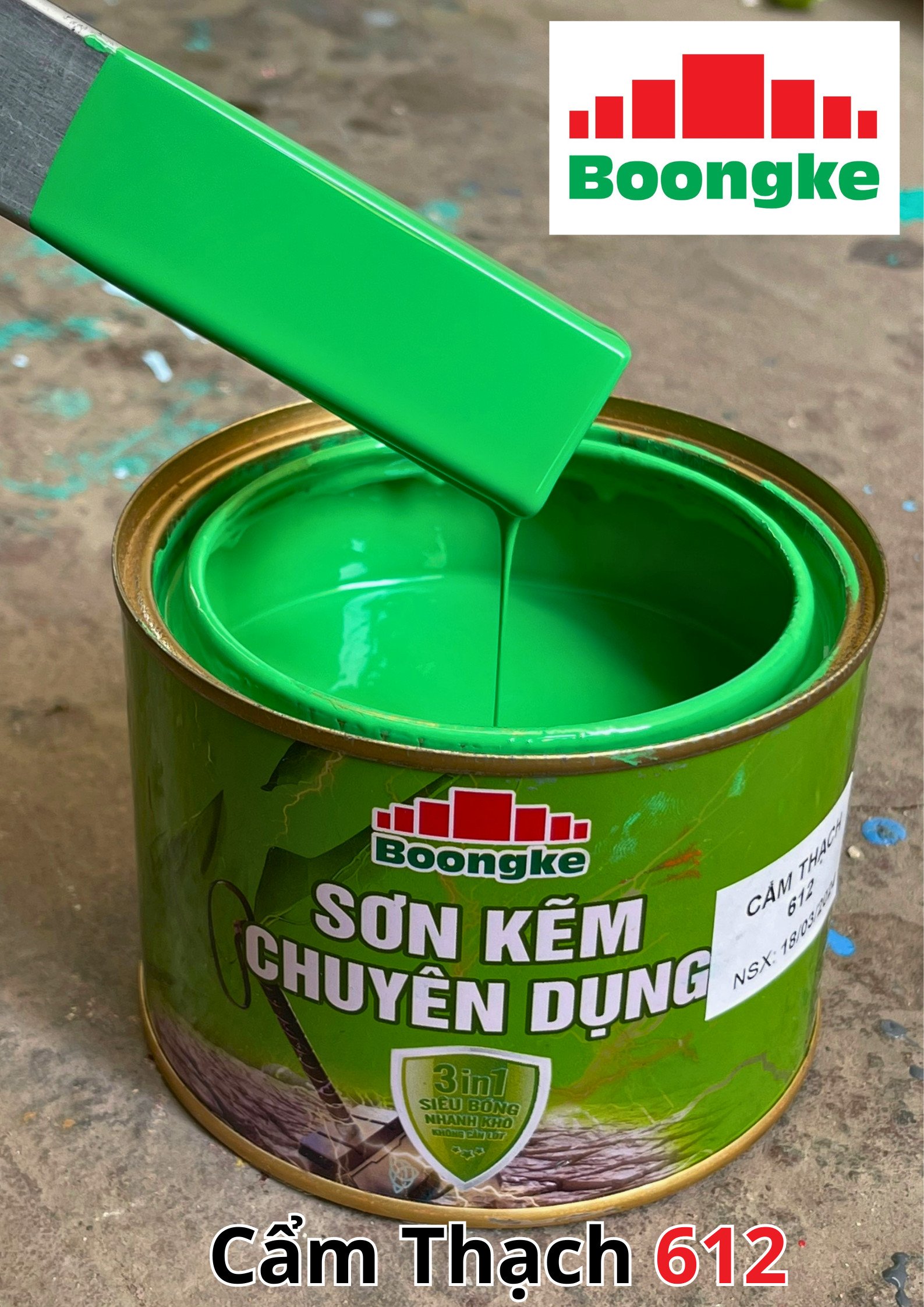 SƠN KẼM SIÊU BÓNG 1 THÀNH PHẦN SIÊU BÓNG BOONGKE Là loại sơn tổng hợp đặc biệt dùng cho việc bảo vệ bề mặt khó bám dính như thép mạ kẽm, betong, gỗ, kính,… sử dụng trong các công trình như nhà thép, cổng sắt, cửa sắt, bảo vệ, chống rỉ, sơn cho tole mạ kẽm, inox, gỗ…Sơn phủ màu trực tiếp lên bề mặt, không cần sơn lót.