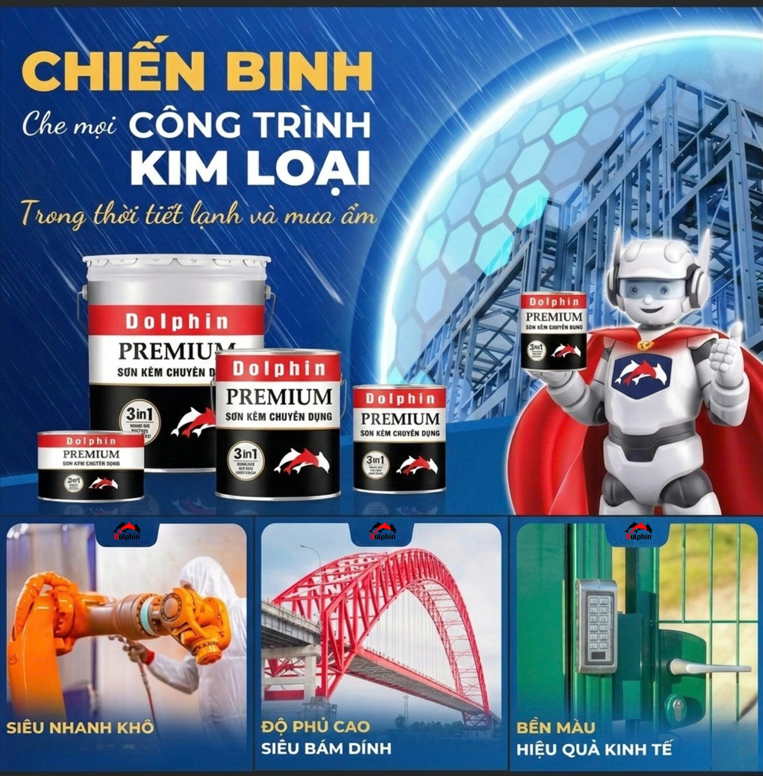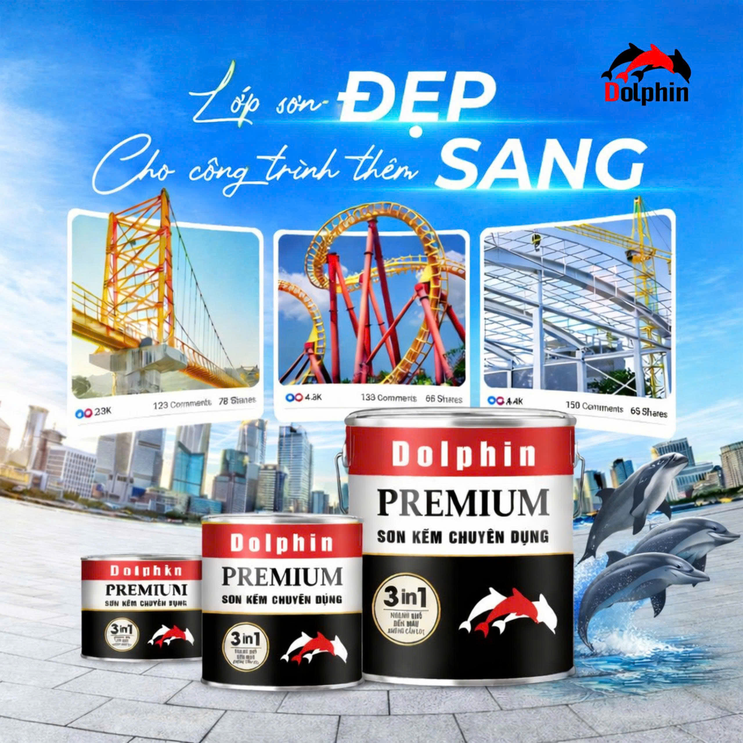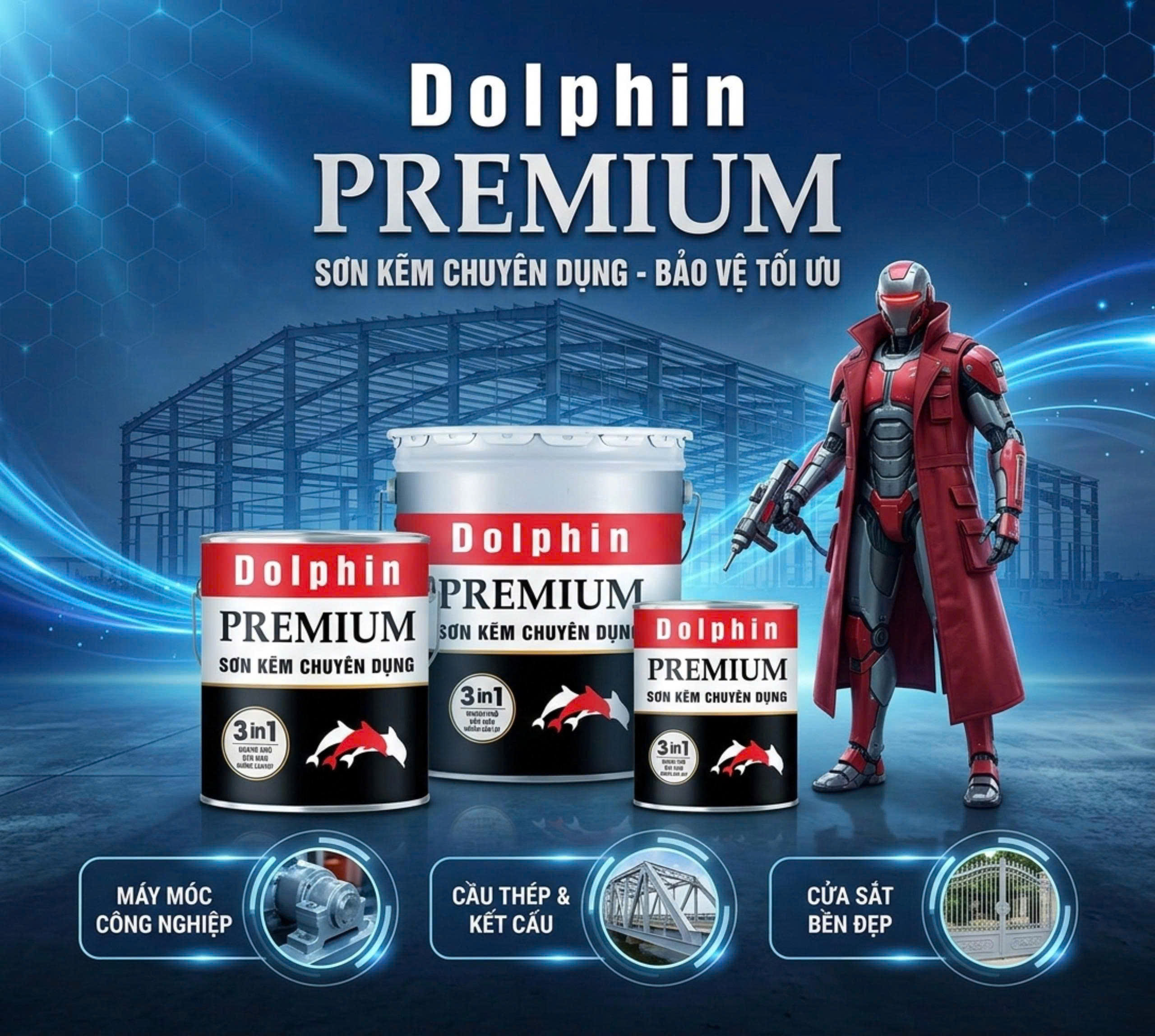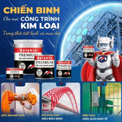 Sơn kẽm Dolphin Premium là loại sơn tổng hợp đặc biệt dùng cho việc bảo vệ bề mặt khó bám dính như thép mạ kẽm, inox, bê tông, gỗ…Sử dụng trong các công trình như nhà thép, cổng sắt, cửa sắt, bảo vệ chổng rỉ, sơn cho tole mạ kẽm…Sơn phủ màu trực tiếp lên thép mạ kẽm, không cần sơn lót.