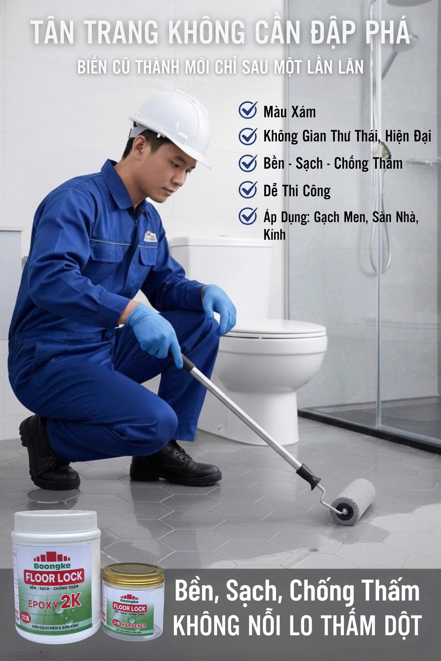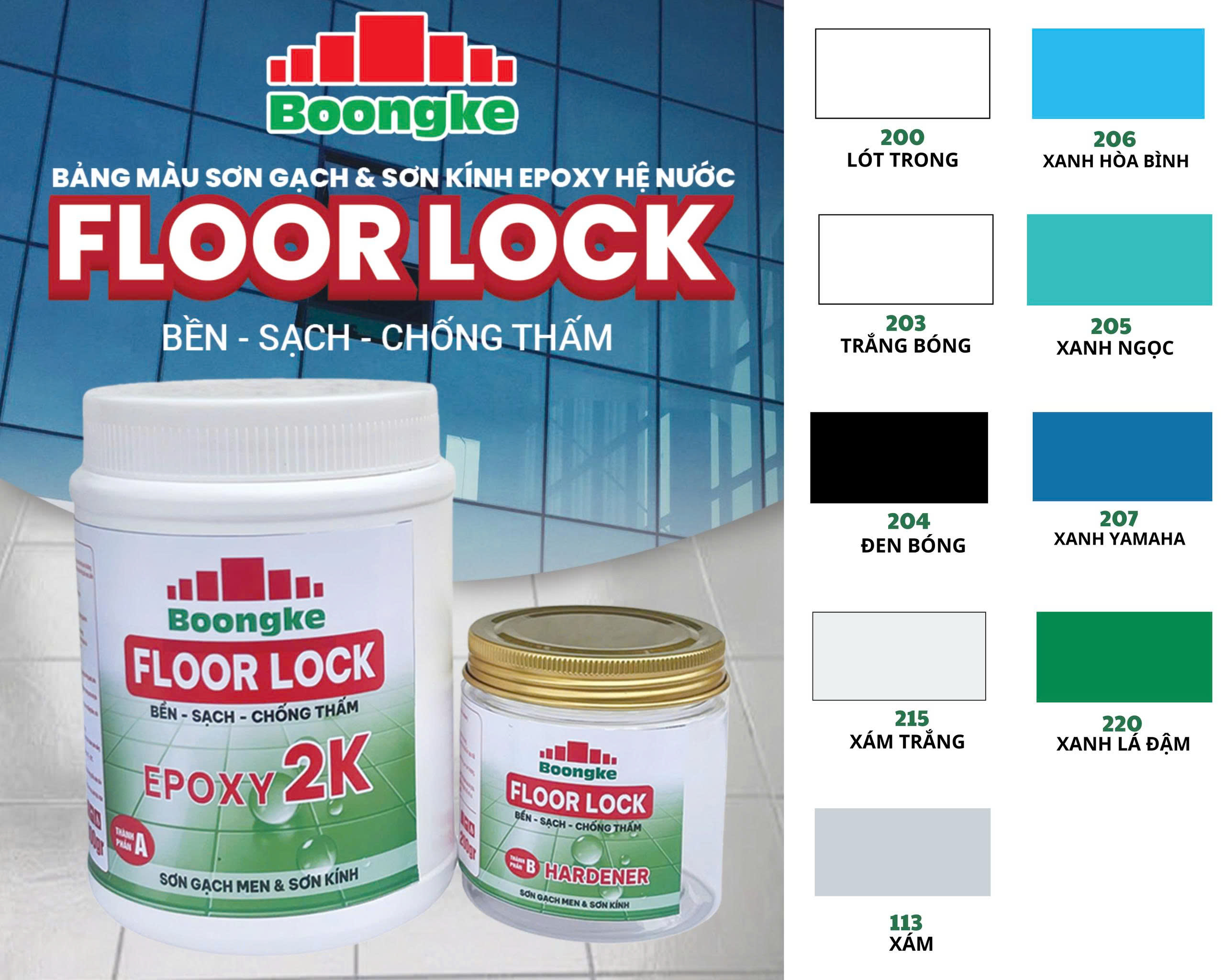 SƠN EPOXY 2K HỆ NƯỚC CHO GẠCH MEN VÀ KÍNH FLOOR LOCK BOONGKE